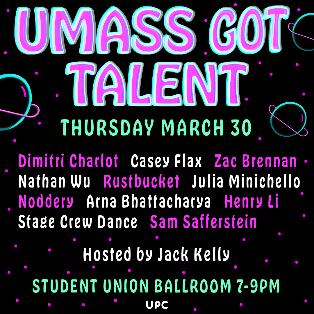The following graphics were created the University Programming Council at UMass Amherst. These graphics were used on social media, flyers, and shown on campus televisions.